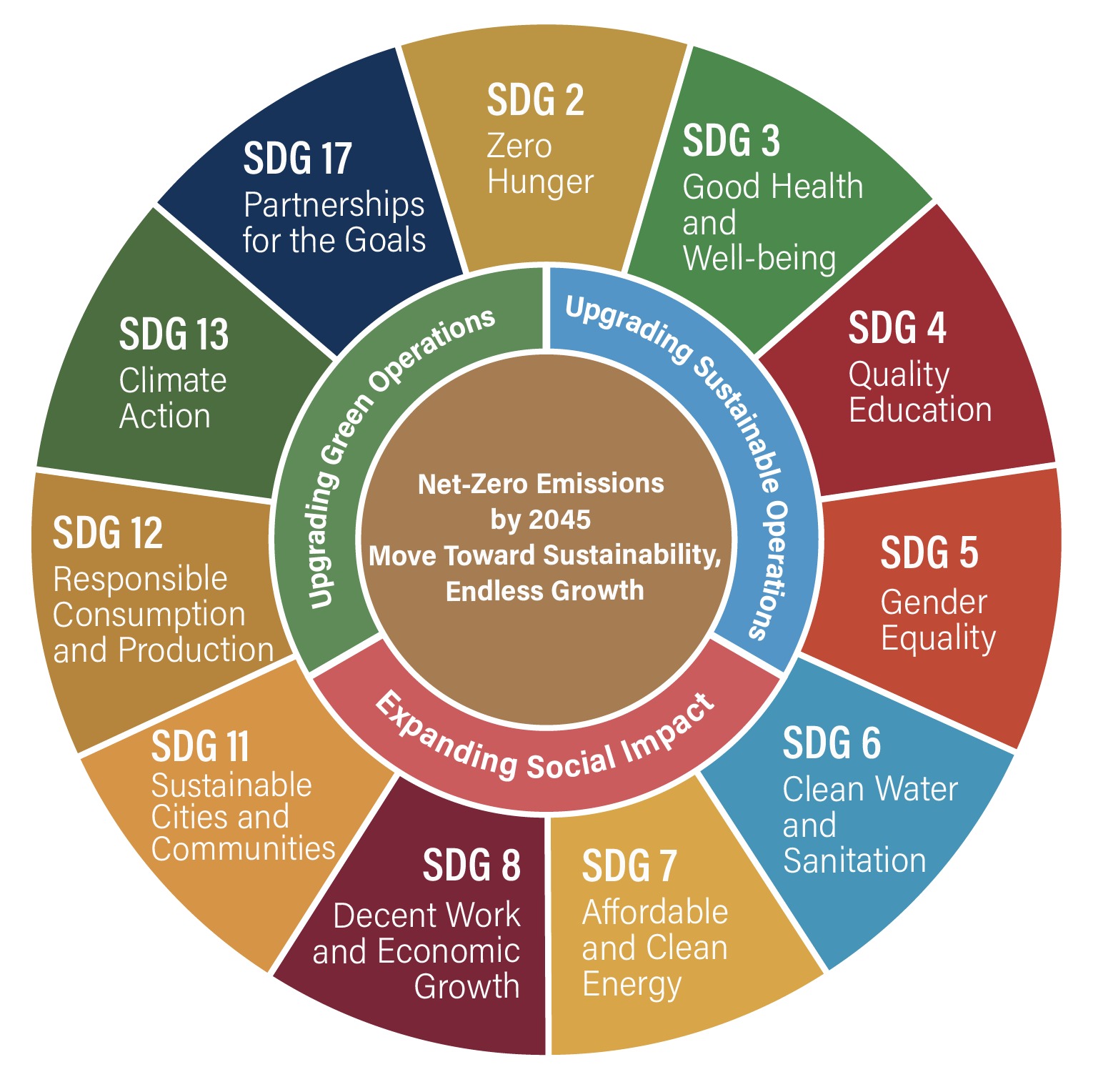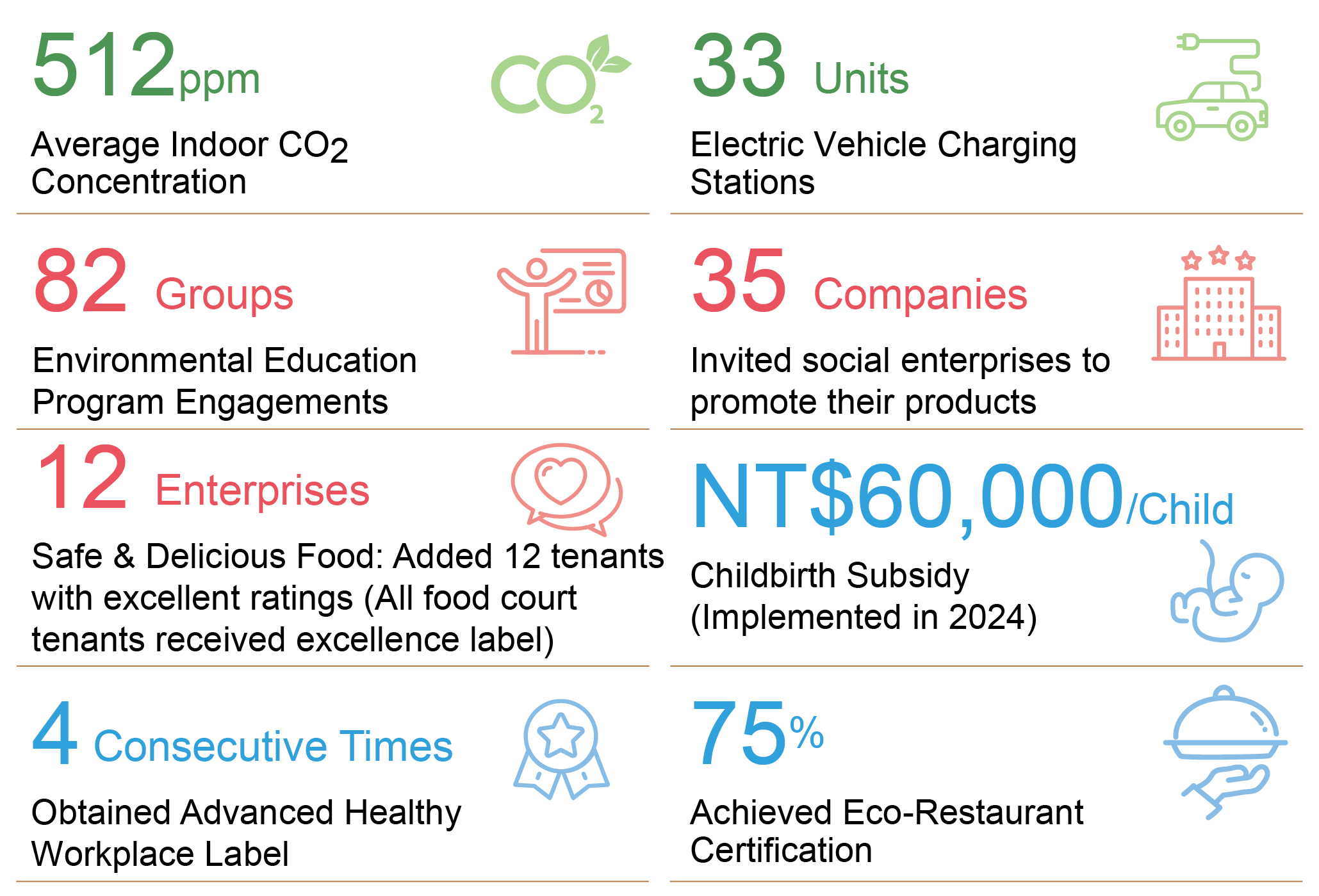 Guided by its sustainability strategy blueprint, TAIPEI 101 is committed to advancing ESG sustainability practices, focusing on three objectives: "world's tallest healthy green building," "creating diverse social value," and "building a sustainable corporate culture." Adopting a "landlord-tenant collaboration" strategy, it partners with retail brands, corporate tenants, and strategic allies to advance environmental sustainability, social inclusion, and governance innovation. This drives progress toward the 2045 net-zero target, expanding sustainable impact and mutual prosperity.
